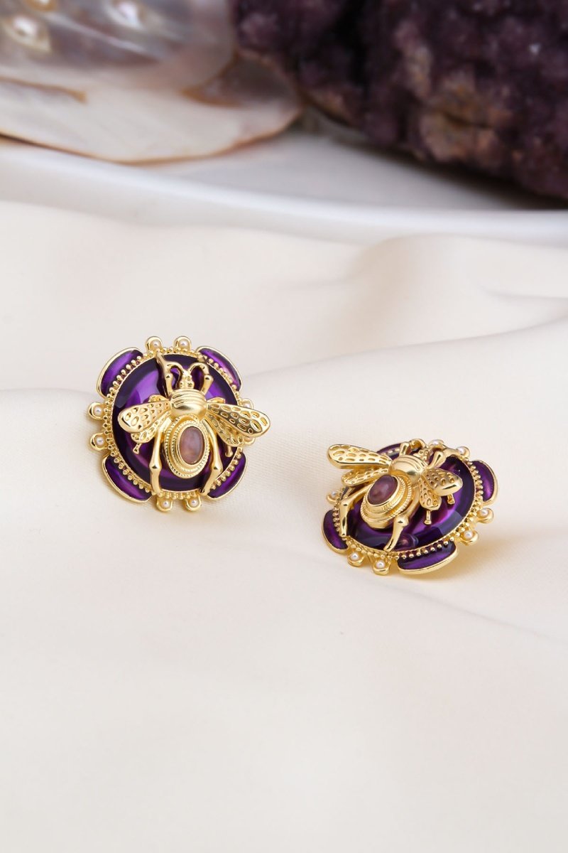 Oorbellen ingelegd met amethisten.