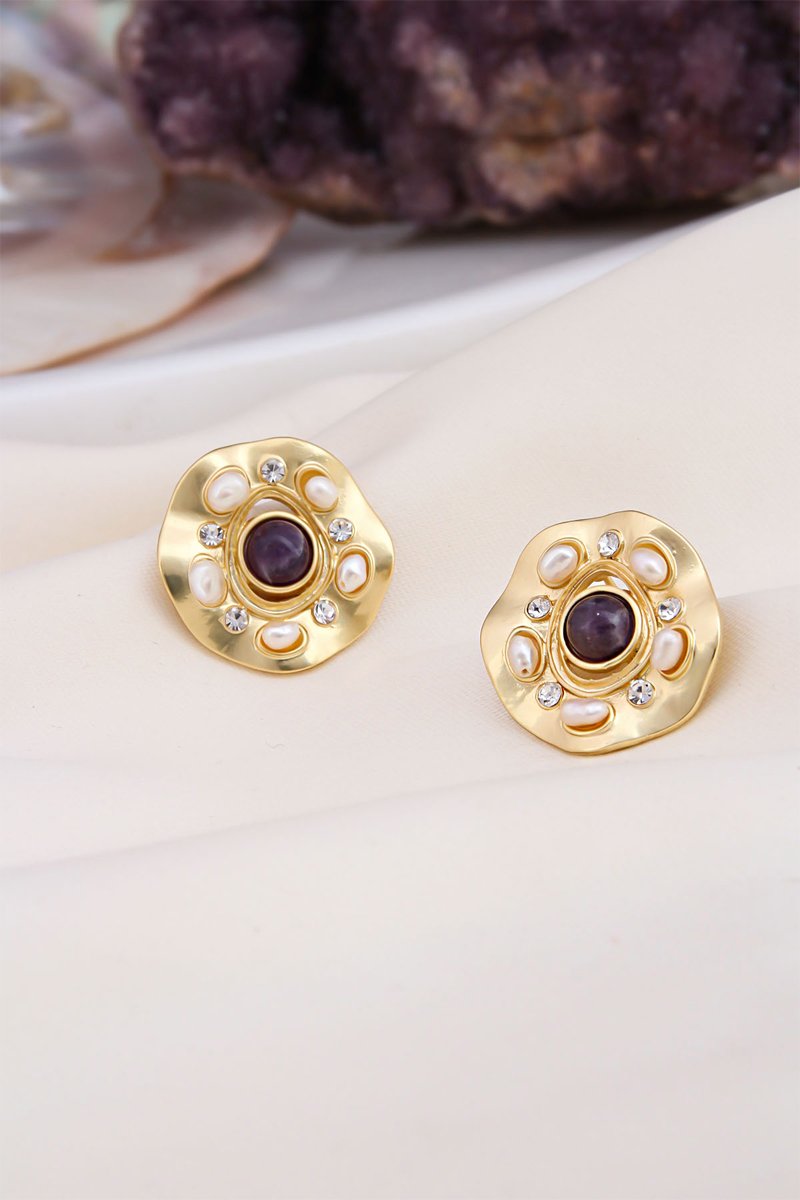 Hangende oorbellen ingelegd met amethist, 5 kunstparels en 5 kristallen.