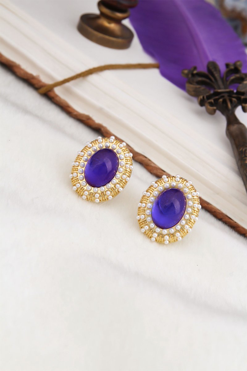 Hangende oorbellen ingelegd 1 amethist en kunstparels.
