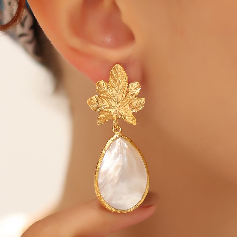 Oorbellen - Messing Doublé Goud en Parelmoer