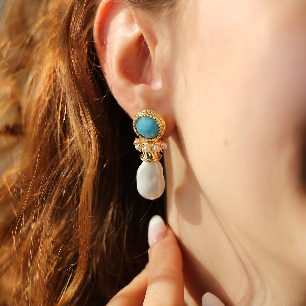 Oorbellen - Messing Doublé Goud, Opaal & Parel