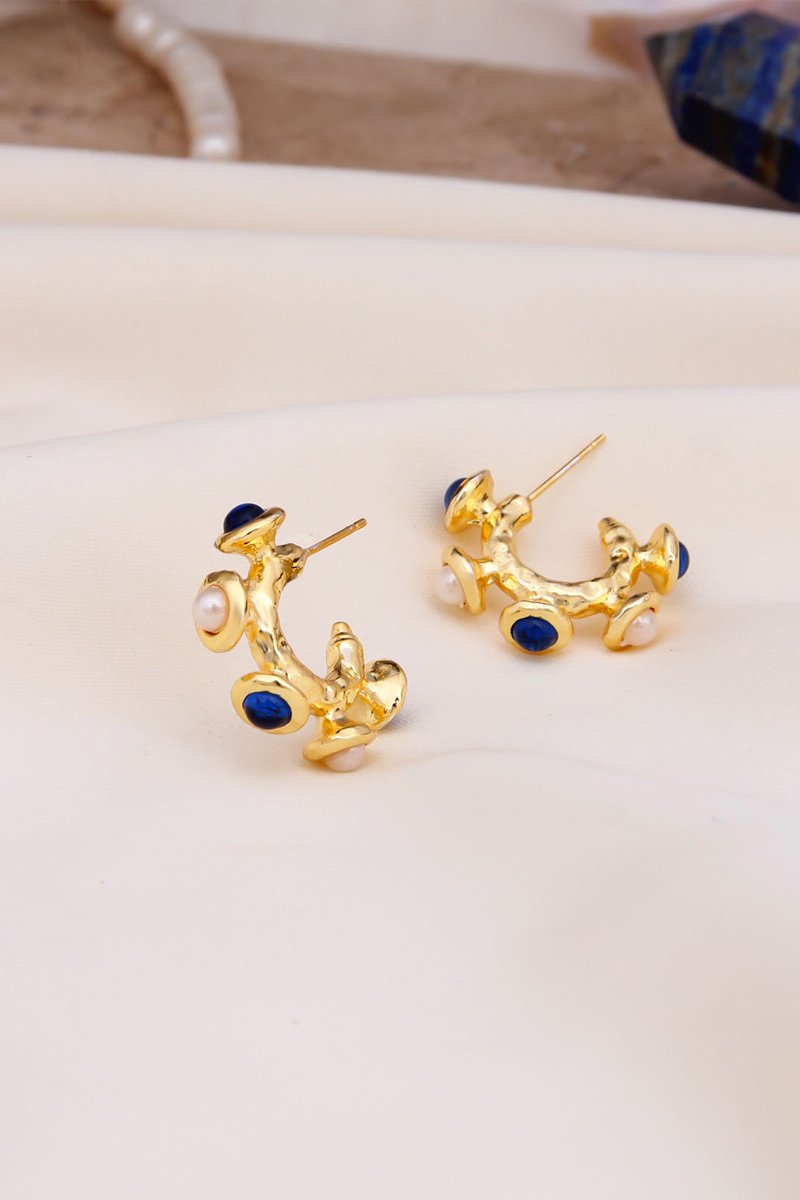 Halve creolen ingelegd met kristallen en cultivéparels.