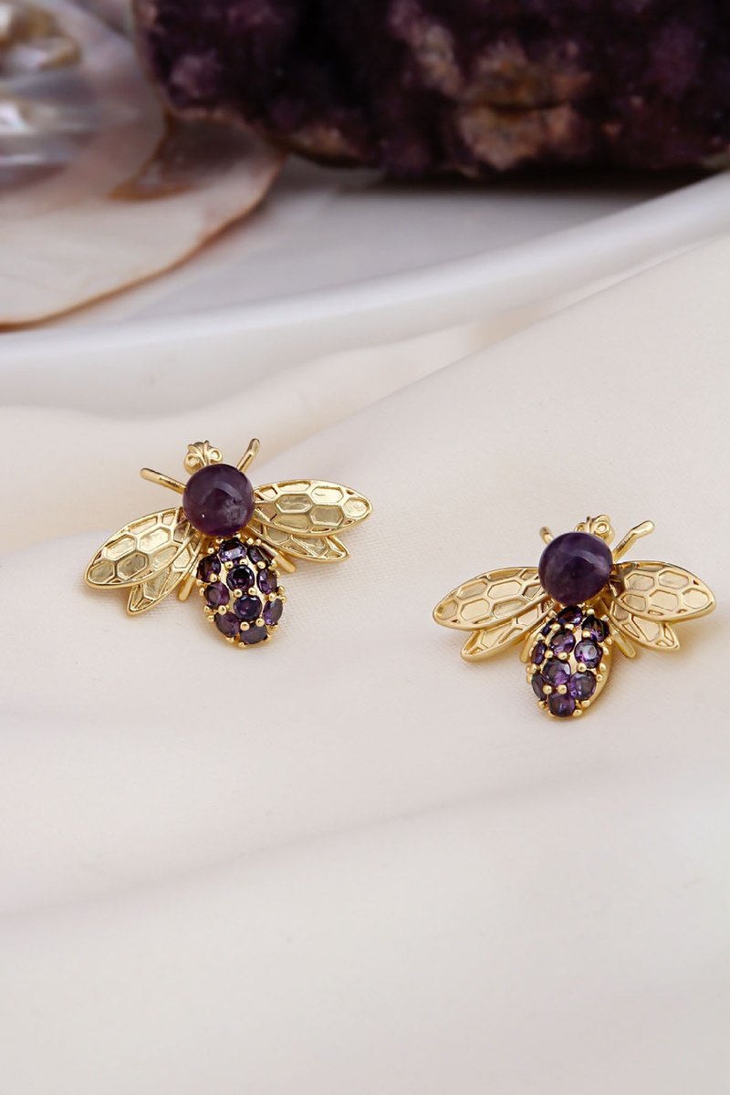 Materiaal: messing, koperkleurig, Amethisten en Zirkonia’s