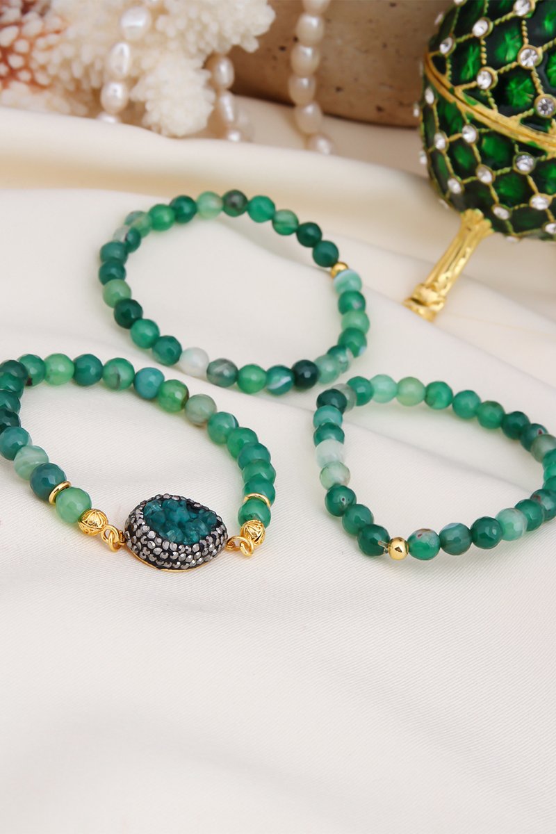 3 armbanden - Doublé Geelgoud, Agaten en Hematieten