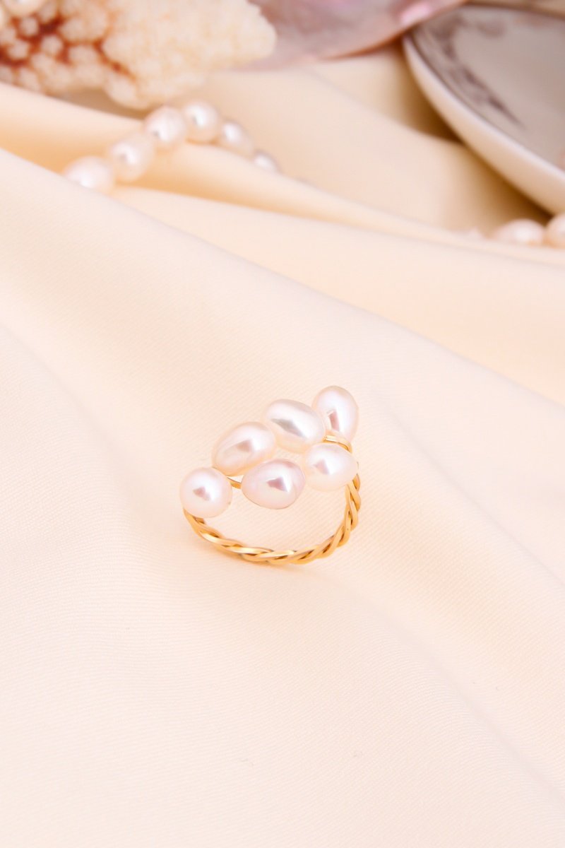 Verstelbare ring van doublé geelgoud ingelegd met kunstparels.