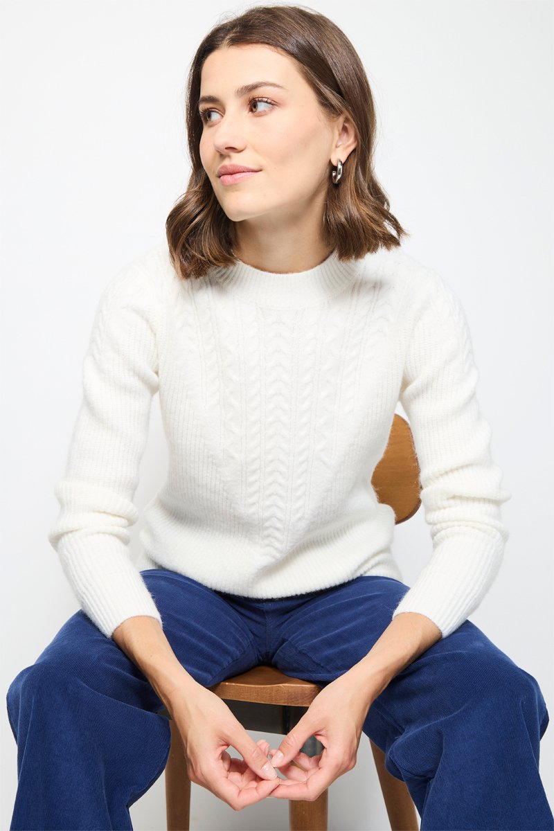 Ineengedraaid geweven op de mouwen en aan de voorkant.