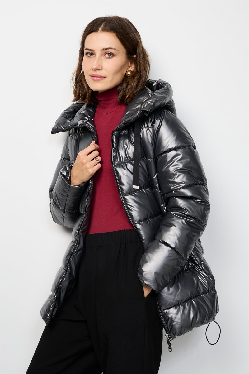 Gewatteerde jas met lange mouwen.