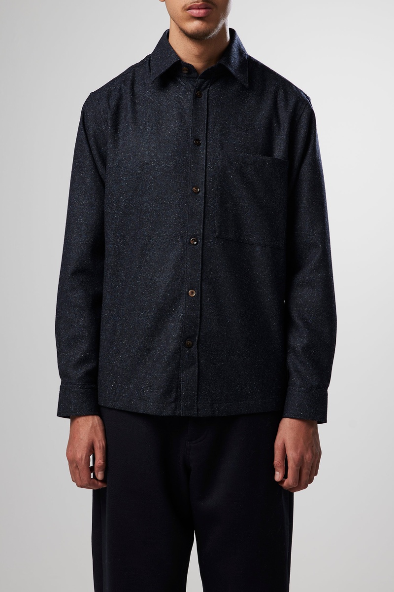 Zijden en Wollen Overhemd Hans - Marineblauw
