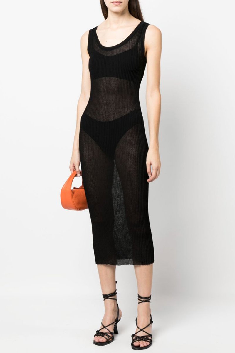 Nauwaansluitende licht transparante jurk.