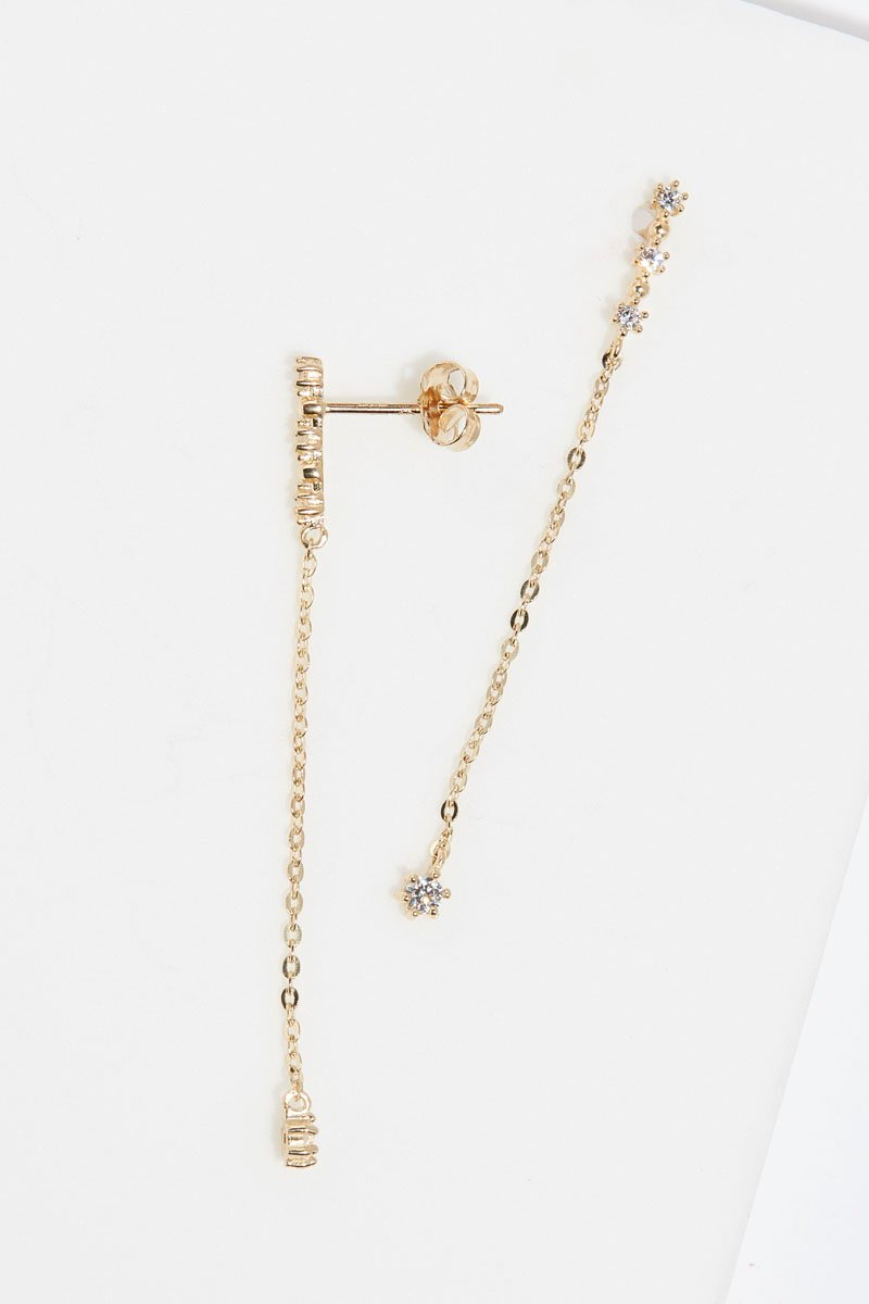 Hangende oorbellen van geelgoud ingelegd met zirkonia's.