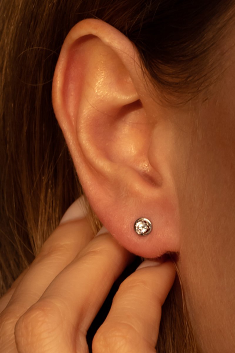Oorbellen van witgoud ingelegd met 1 zirkonia.