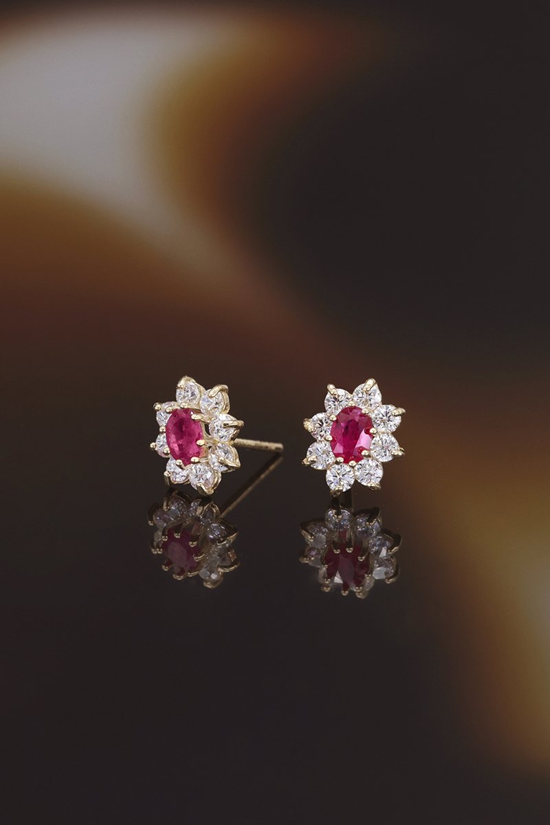 Oorbellen Marguerite Rubis - Geelgoud en Robijnen