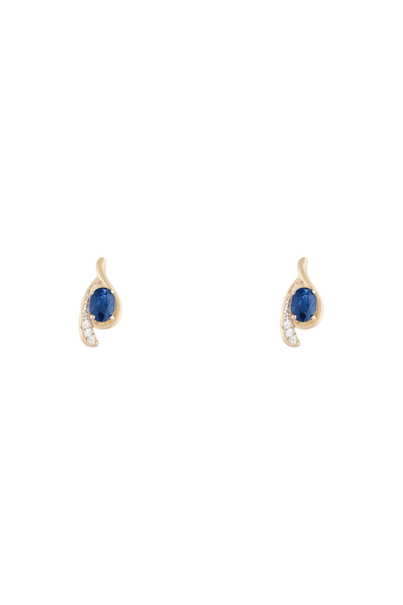Oorbellen van geelgoud en witgoud en ingelegd met een saffier en zirkonia's.