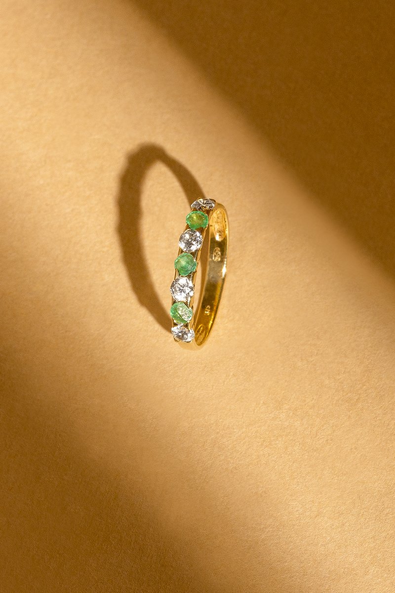 Materiaal: geelgoud 375/1000 en smaragd