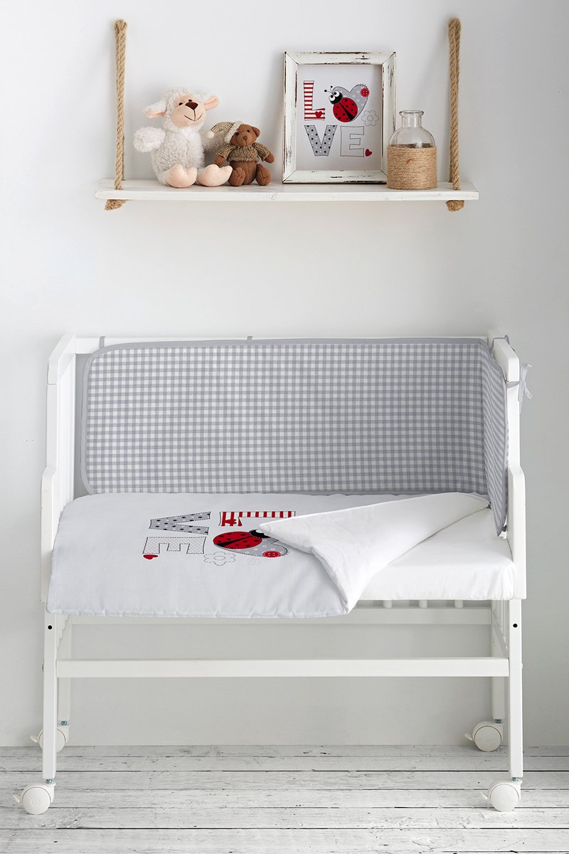 Aanschuifwieg en Bedtextiel Ladybug? - Wit - 4-delig