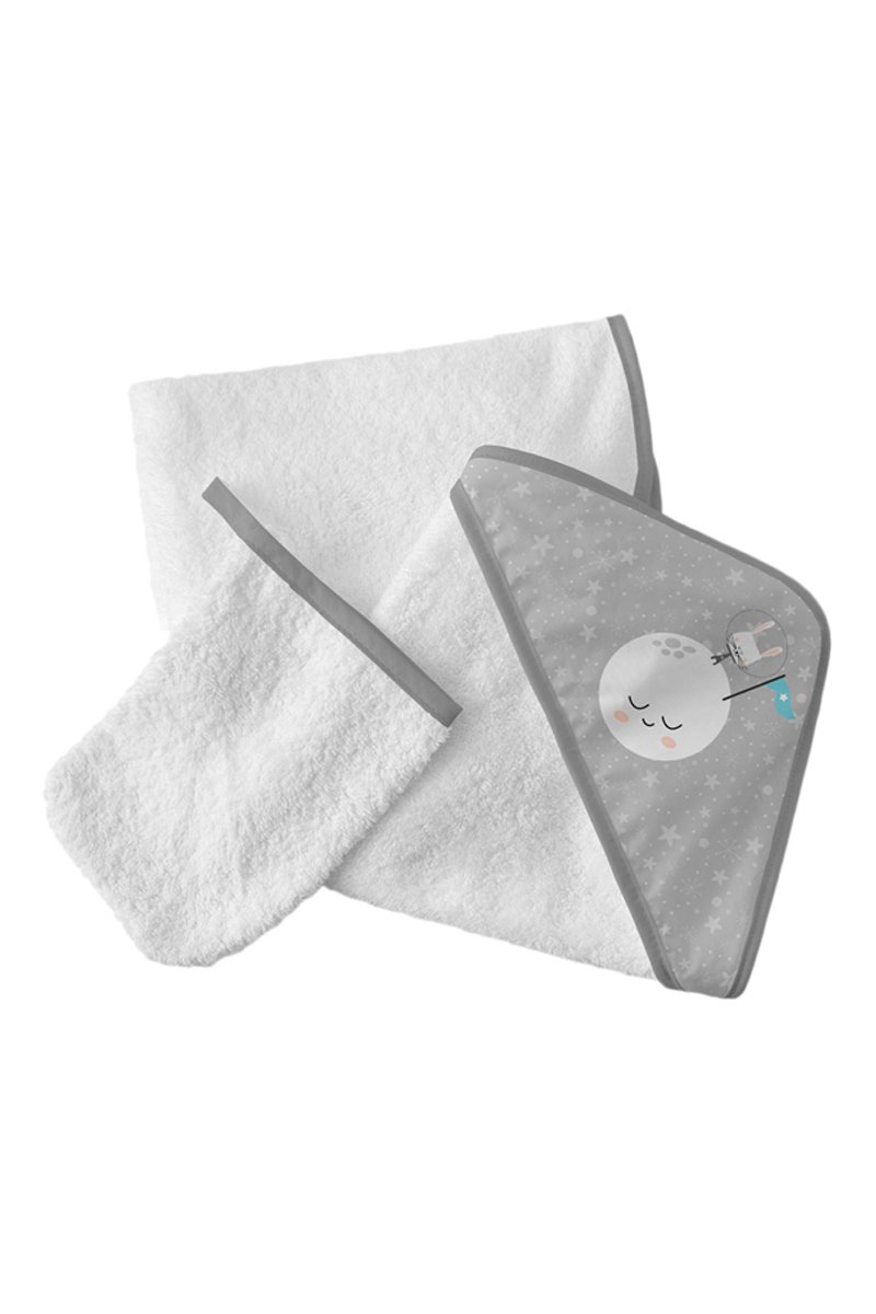 Badjas en Washandje Space Rabbit - Grijs en Wit - 75 x 75 cm