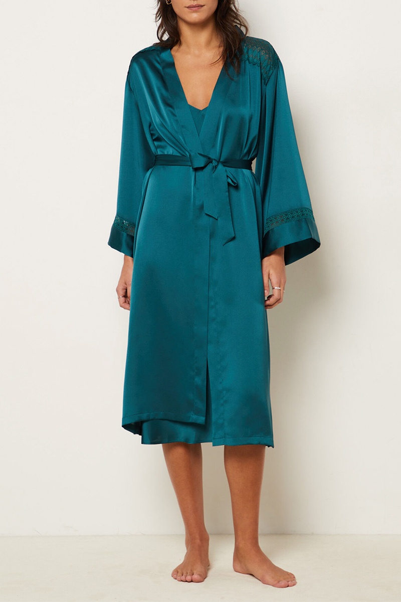 Detail van kant bij de schouders, op de mouwen en aan de achterkant.