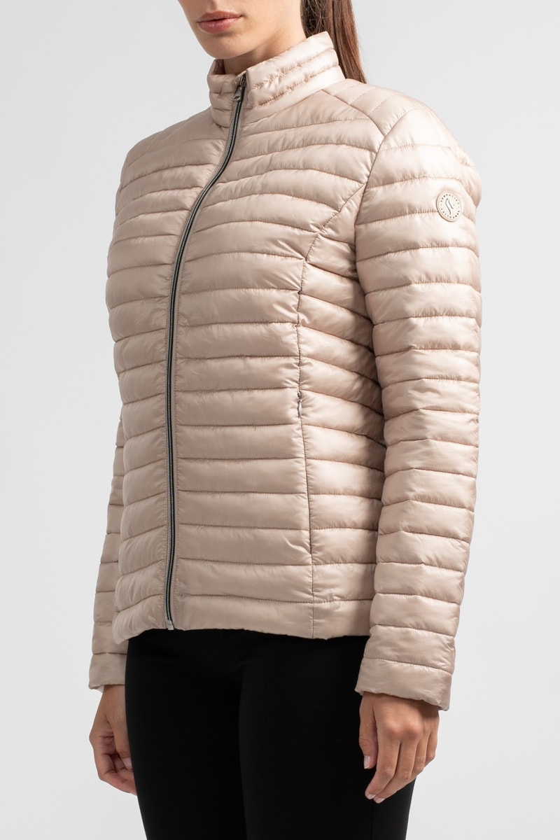 Gewatteerde jas met lange mouwen waarvan 1 met embleem en logo.