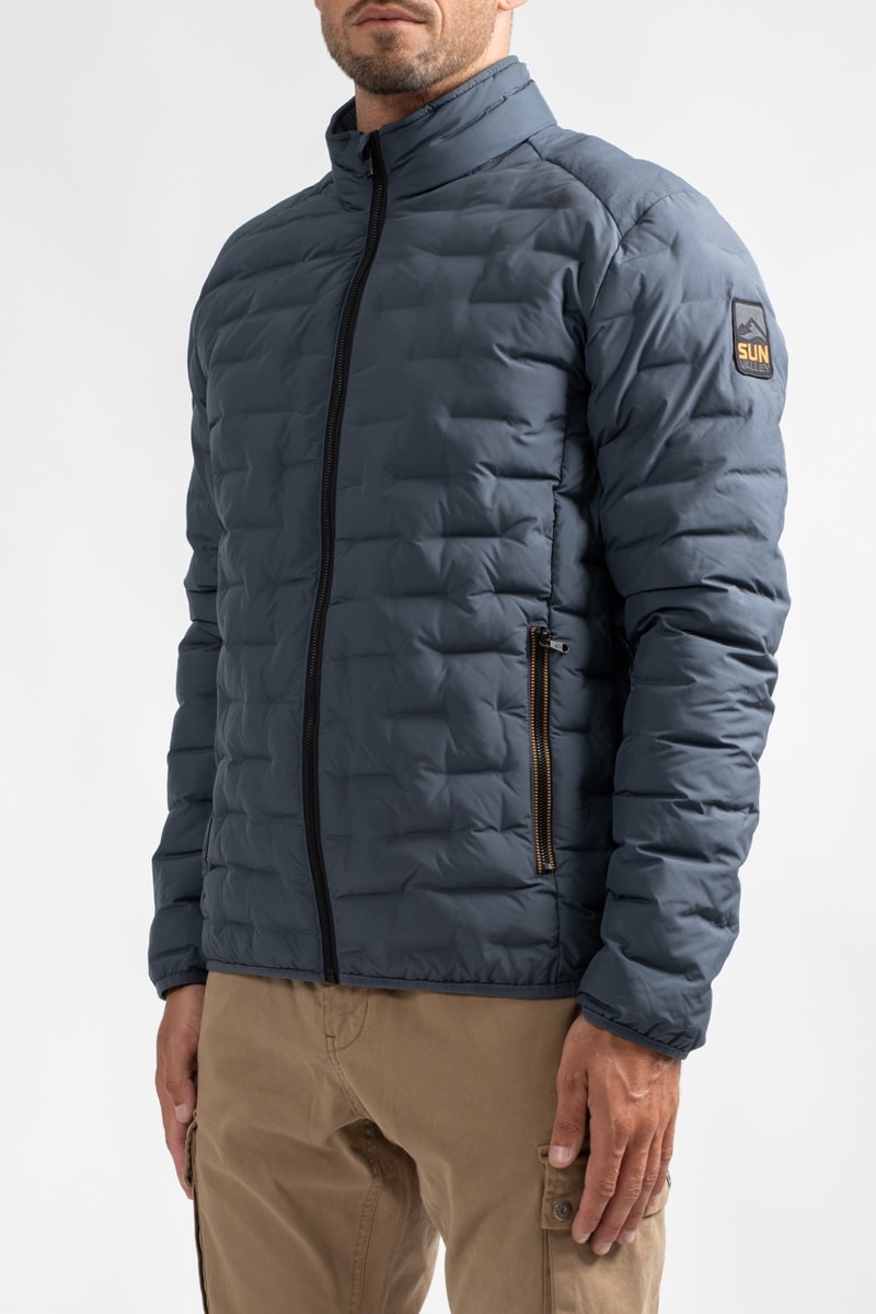 Gewatteerde jas met lange mouwen waarvan 1 met embleem en logo.