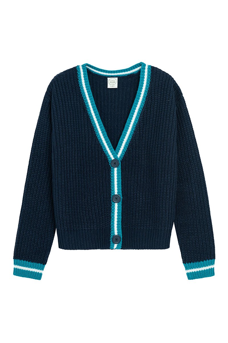 Streepmotief bij de hals, op de mouwen en aan de voorkant.