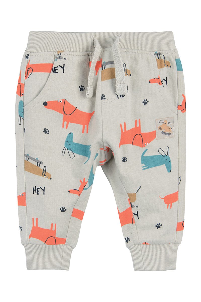 Detail met hondenmotief aan de voorkant.