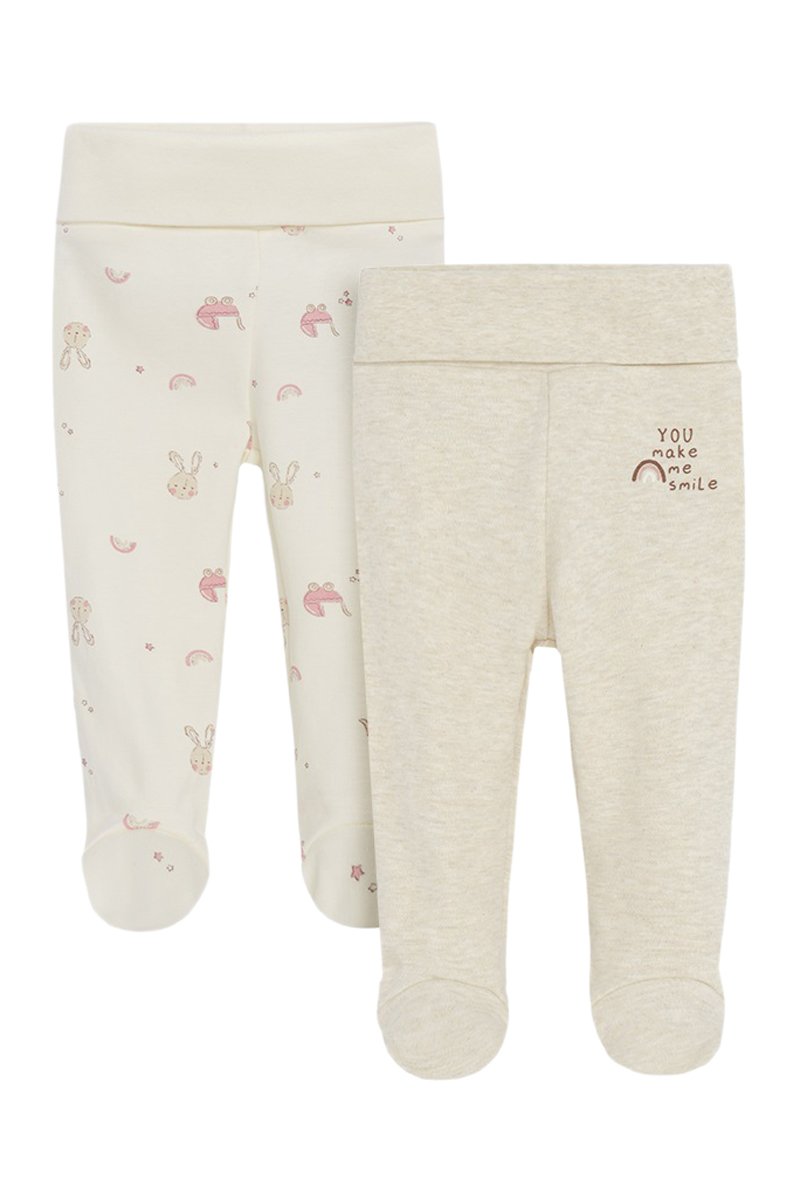2 Biologisch Katoenen Broeken - Gemêleerd Beige en Wit