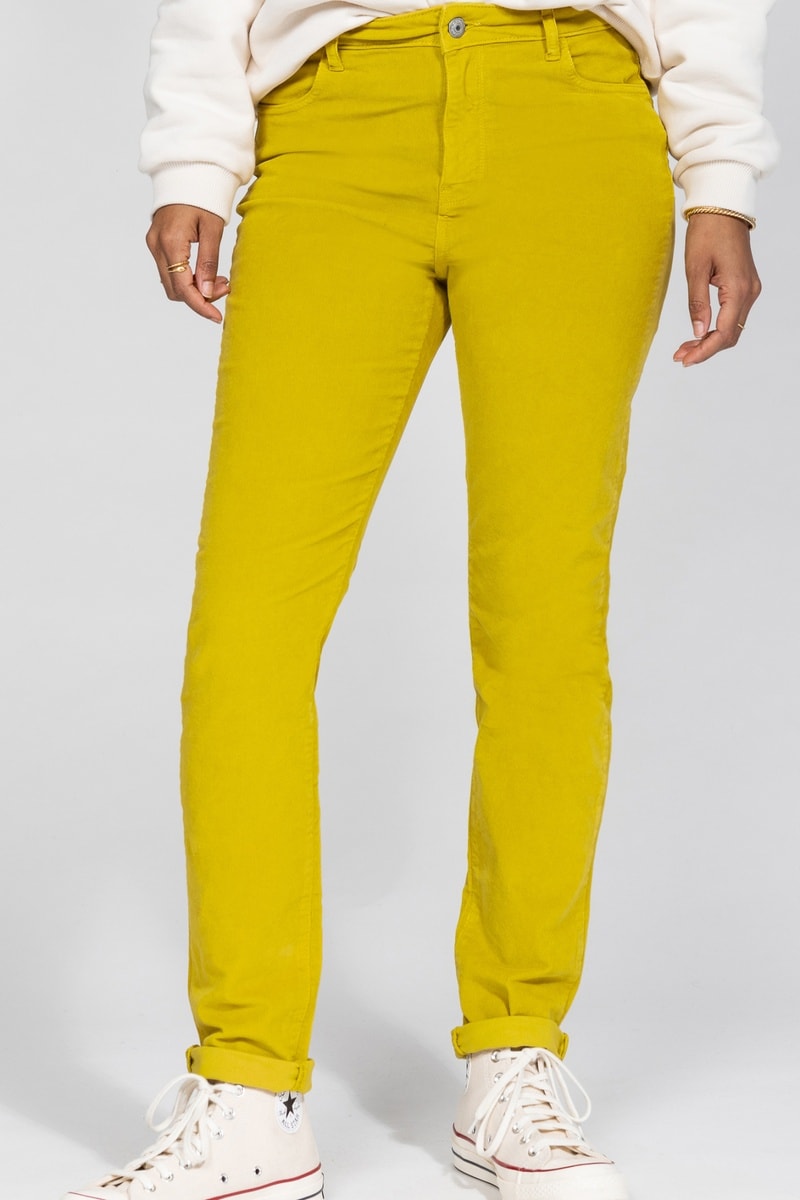 Broek Slim Fit Hoge Taille - Mosterdgeel