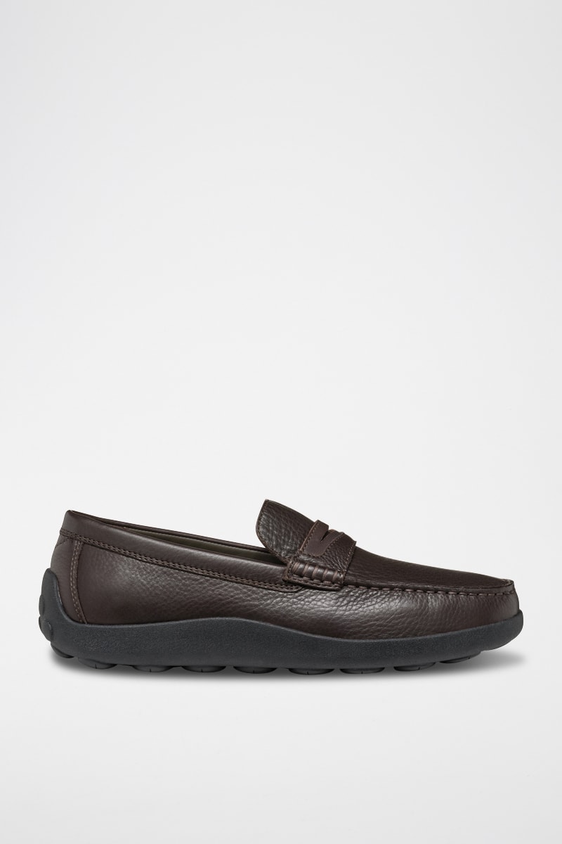 Mocassins van gekorreld leer.