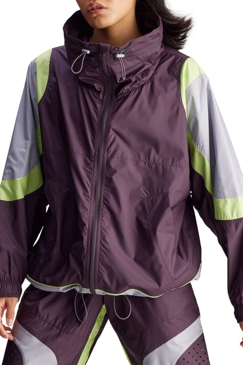 Trekkoorden met biezen op de capuchon, bij de hals en aan de onderkant.