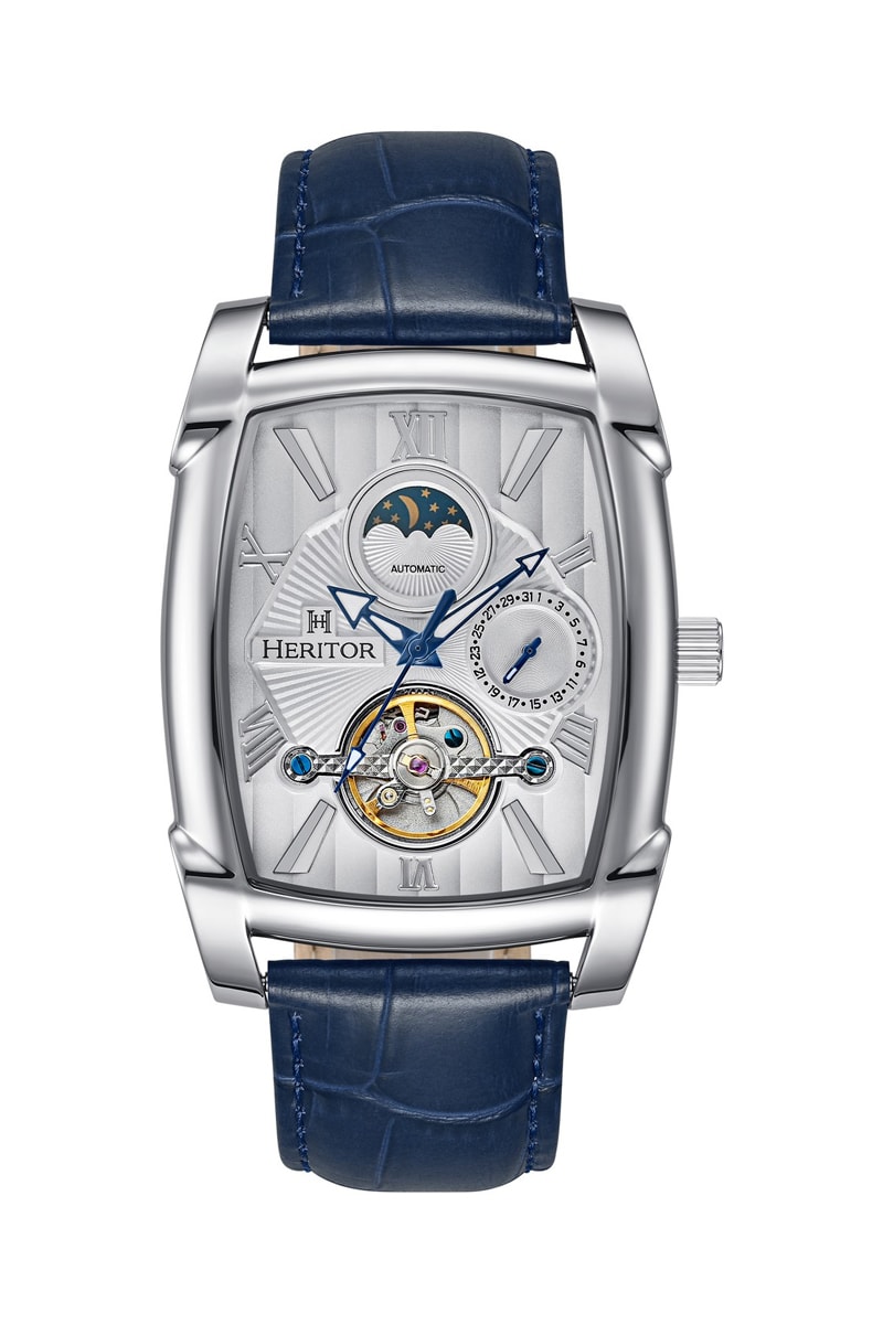 Leren Automatisch Tourbillonhorloge Valentin - Blauw en Zilverkleurig