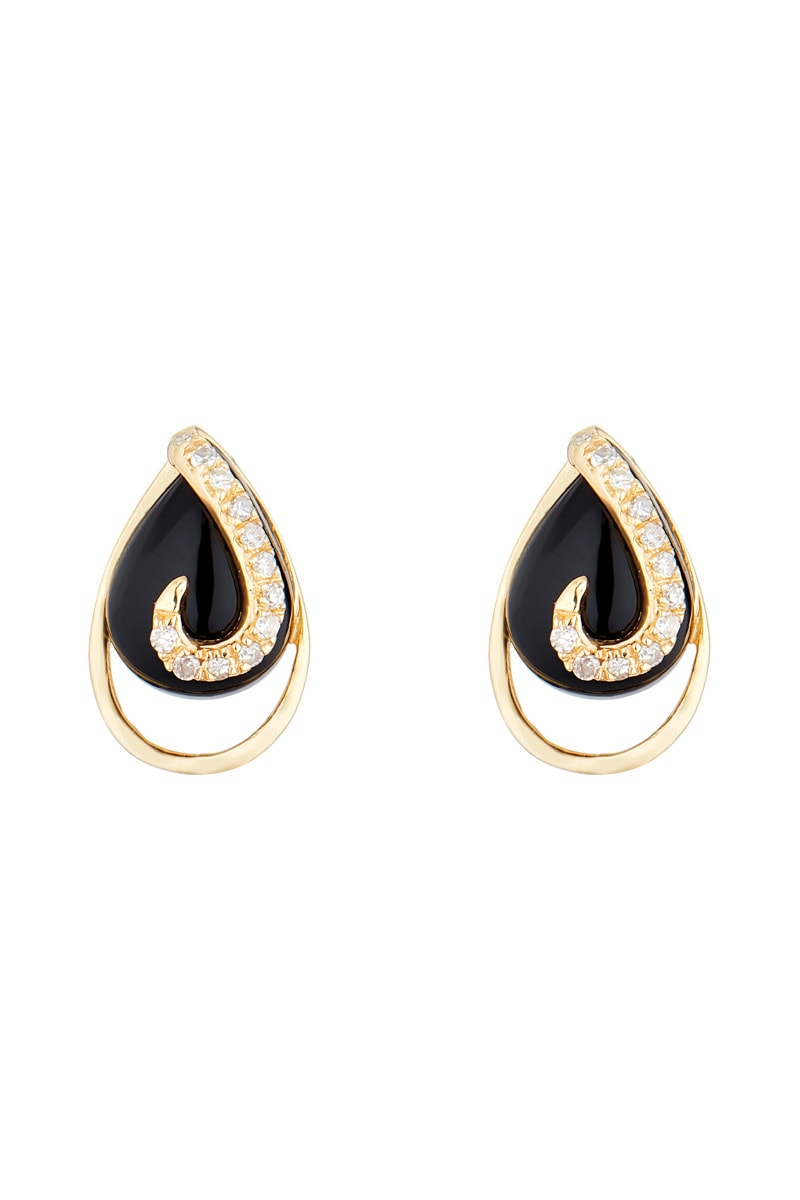 Oorbellen van geelgoud ingelegd met 12 diamanten en 1 agaat.