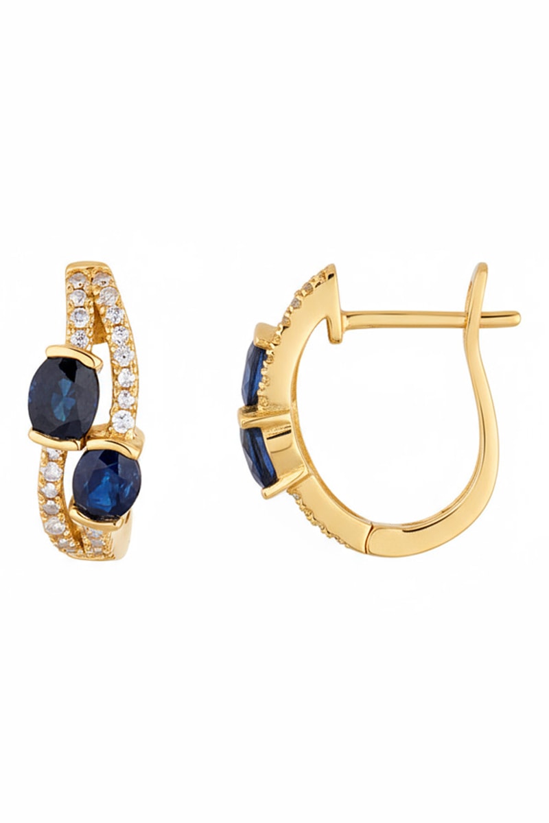 Creolen van geelgoud ingelegd met 7 diamanten en 2 saffieren.