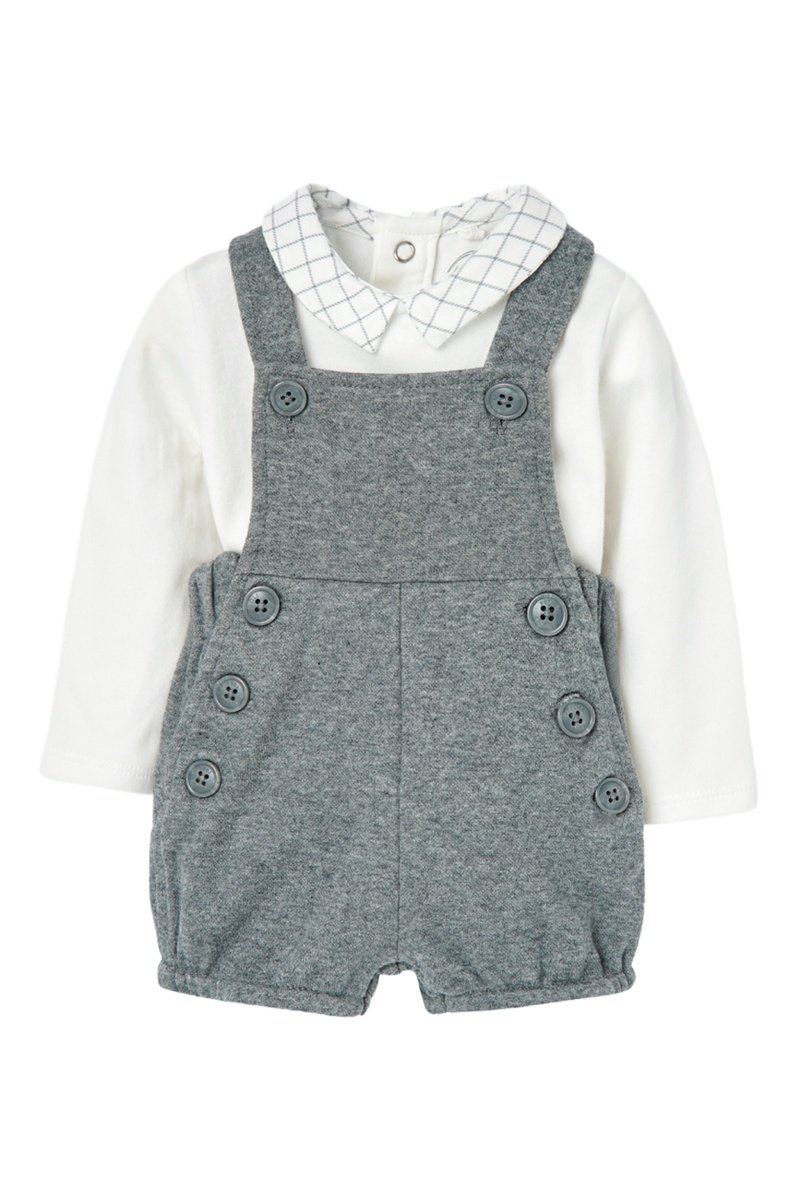 Rompertje en Tuinbroek - Wit en Gemêleerd Donkergrijs