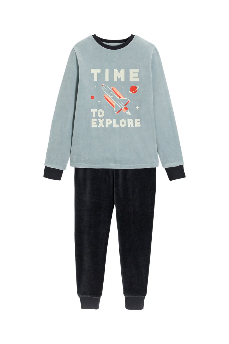 Velours Pyjama - Blauw-grijs - Okaïdi