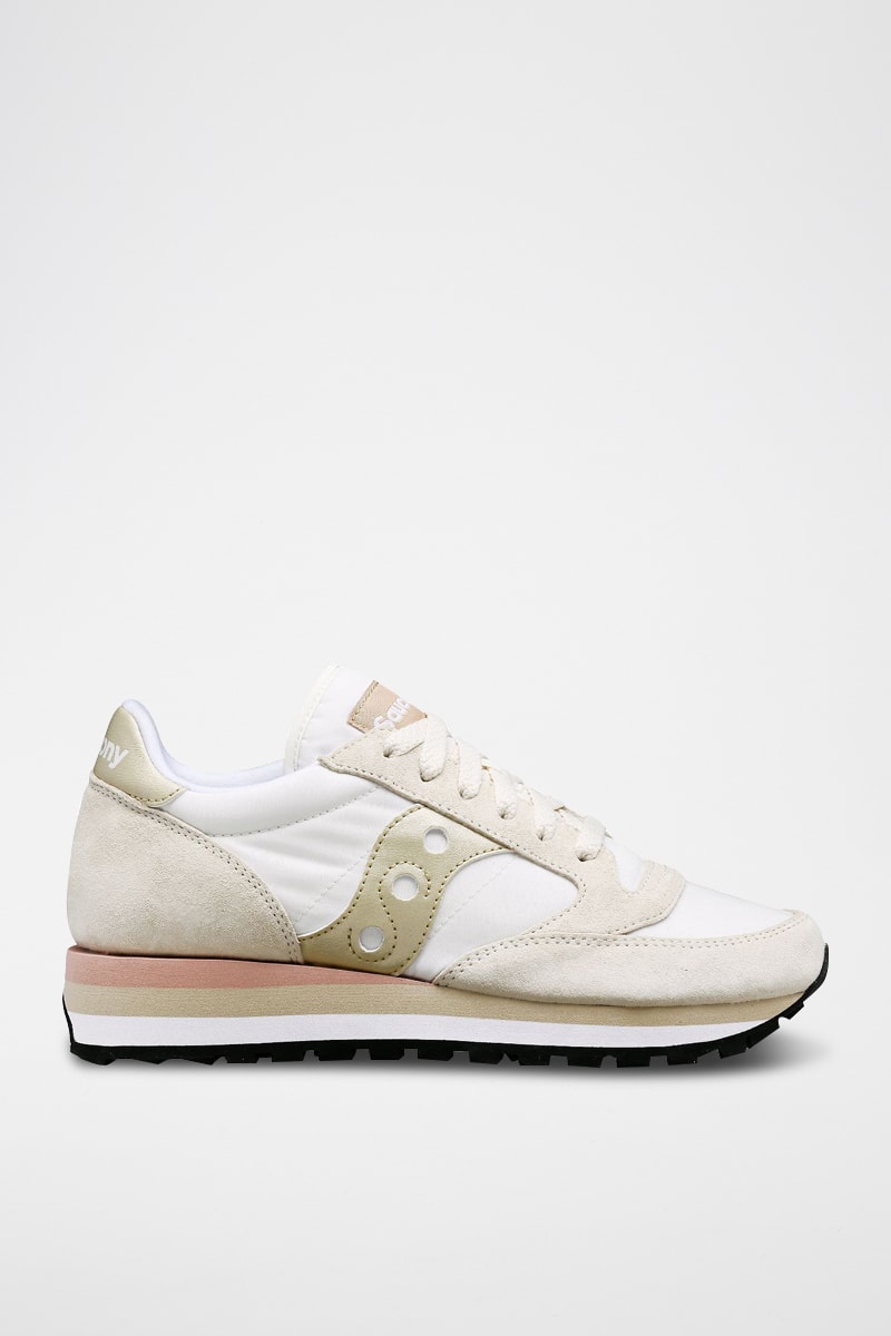 Leren Sneakers Jazz Triple - Lichtgrijs en goudkleurig
