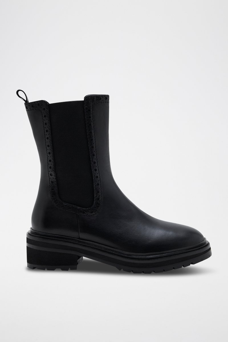 Chelsea boots van kalfsleer. Perforaties aan de zijkanten.