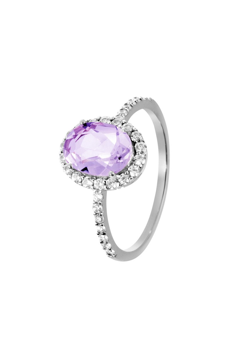 Ring van zilver ingelegd met 1 amethist en zirkonia's.