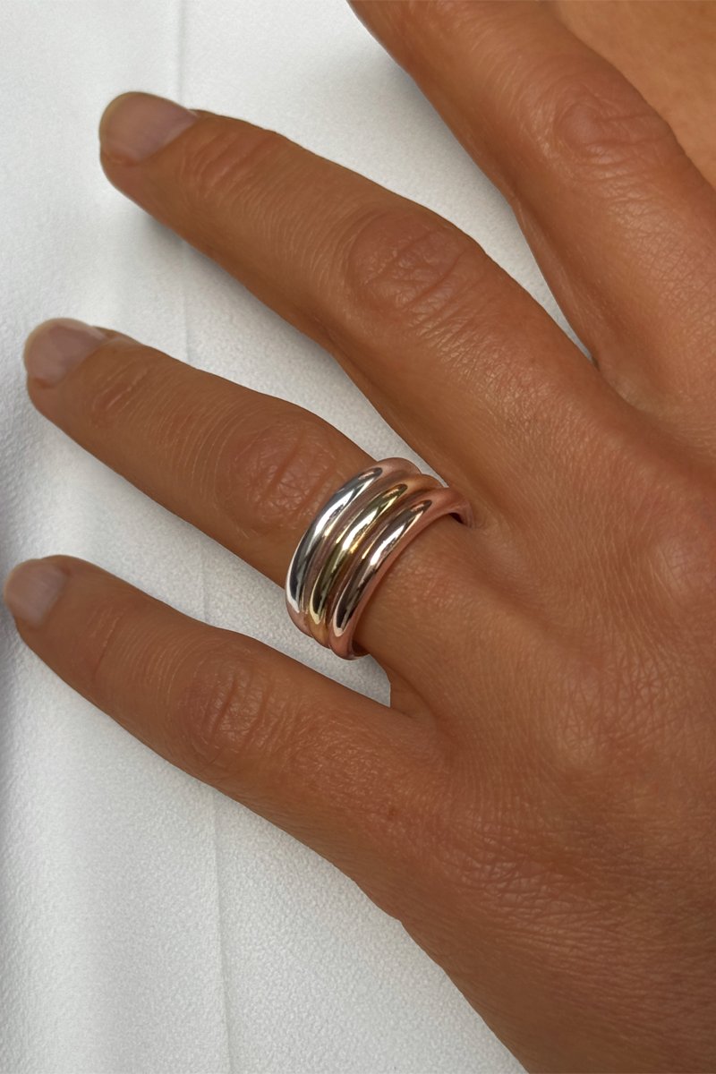 Ring van zilver doublé geelgoud,. roségoud en witgoud.