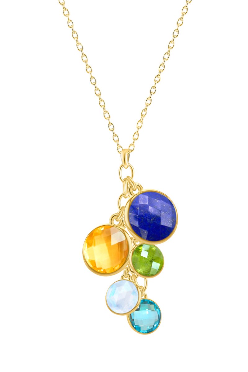 Ketting - Zilver Doublé Geelgoud, Lapis Lazuli, Citrien, Peridoot, Rainbow Moonstone en Topaas