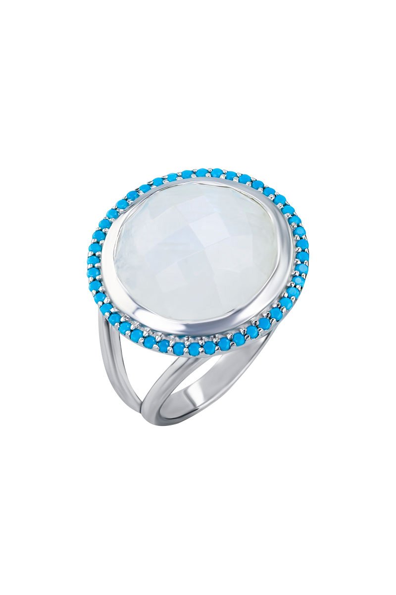 Ring van zilver ingelegd met 1 maansteen en turkooizen.