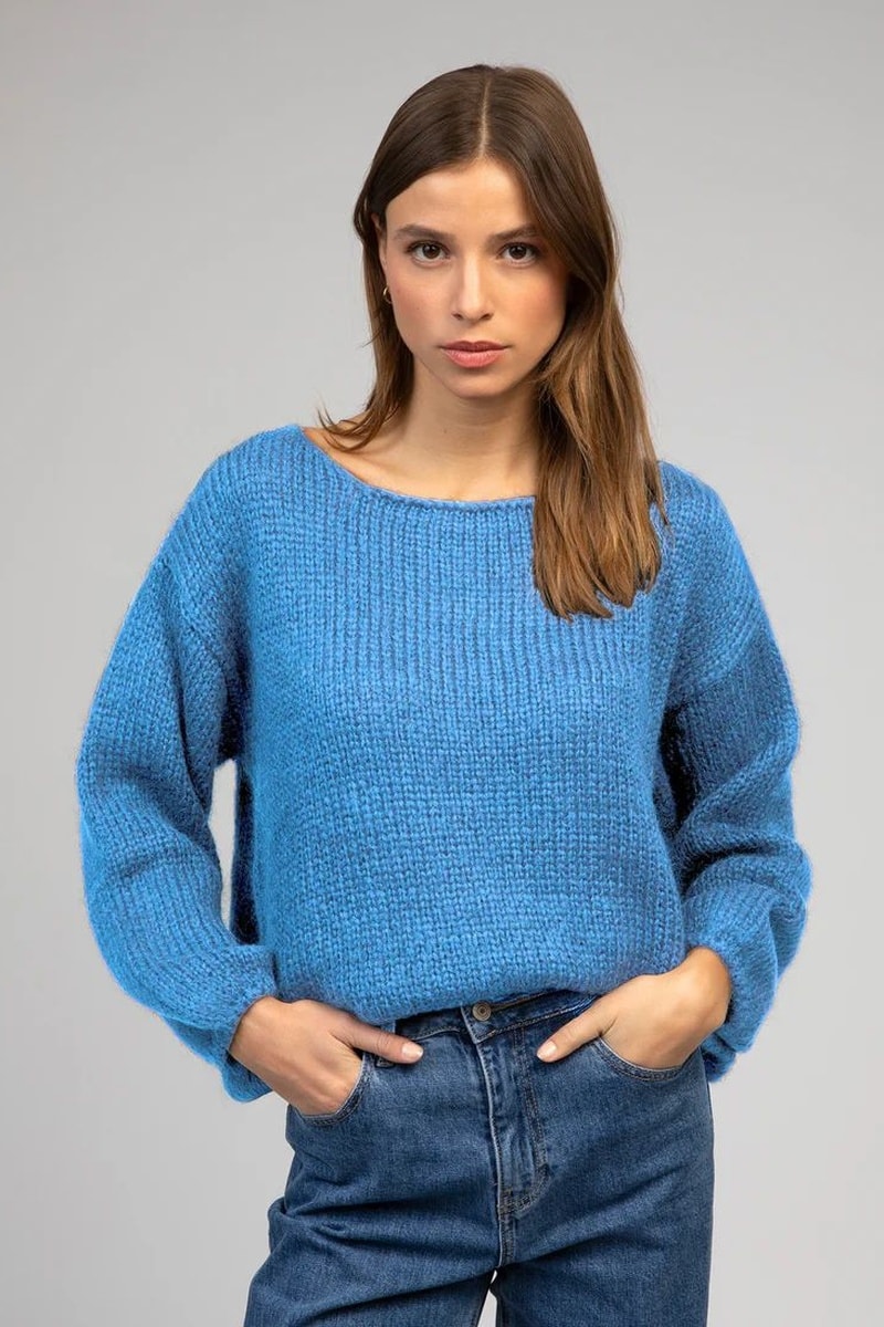 Grof geweven trui.