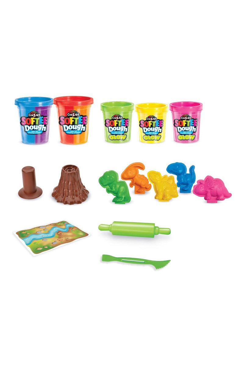 Meng en vorm prachtige dinosaurussen van Softee klei die in het donker oplichten?