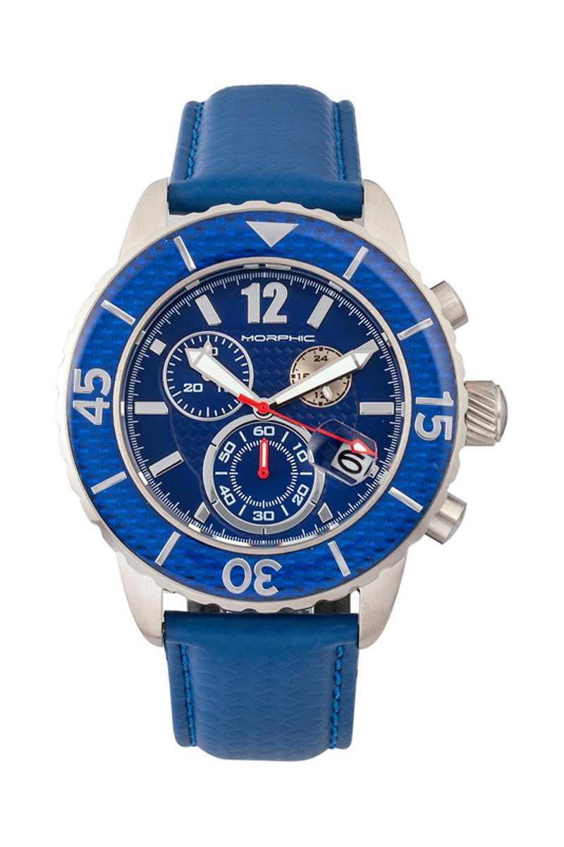 Leren Quartz Horloge M51 Series - Kobaltblauw en Zilverkleurig