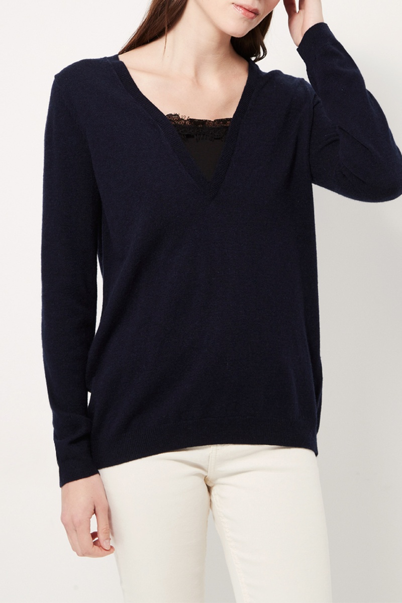 Wollen en Kasjmier Trui Trompe-l’oeil - Marineblauw