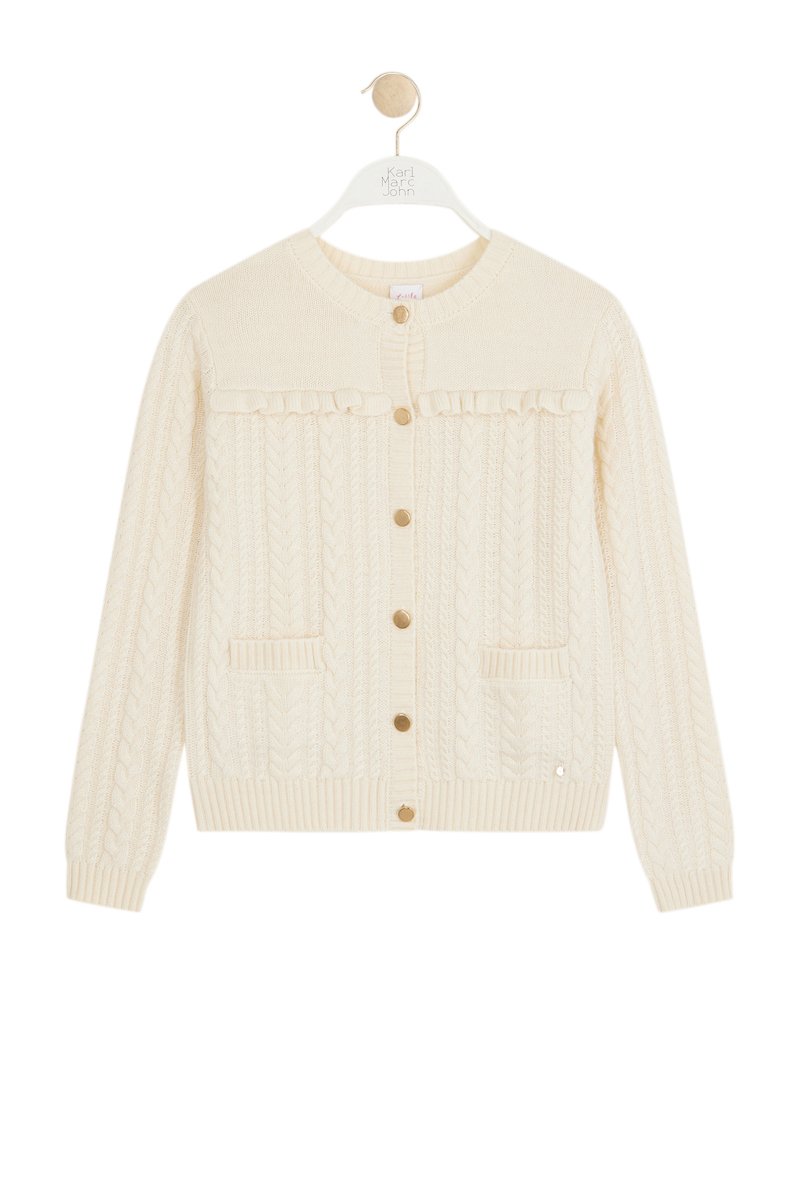 Ineengedraaid geweven bij de mouwen, aan de voorkant en aan de achterkant.