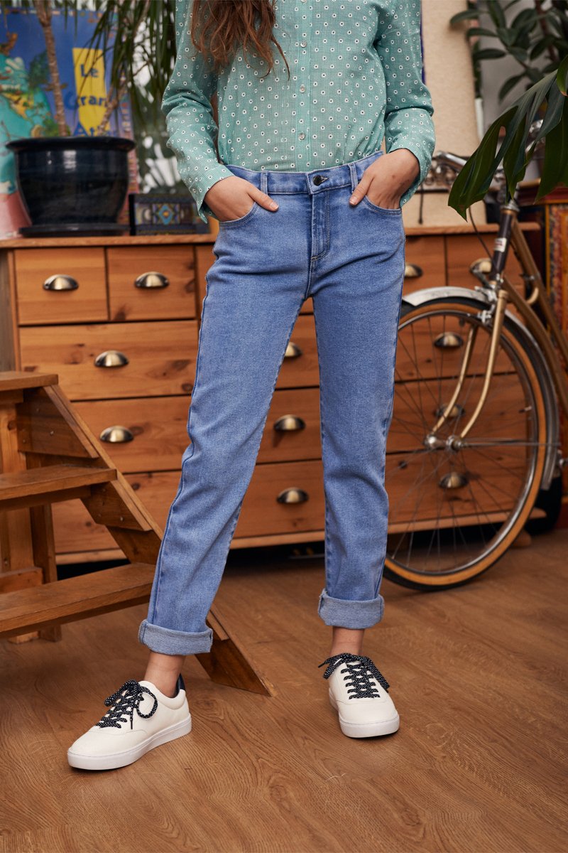 Materiaal: 65% katoen, 18% gerecycled polyester, 15% gerecycled katoen en 2% elastaan
