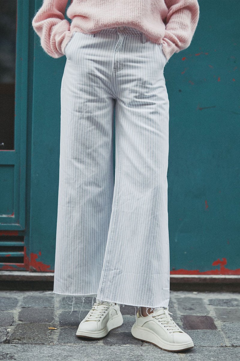 Jeans hoge taille Paulette - Blauw en Wit
