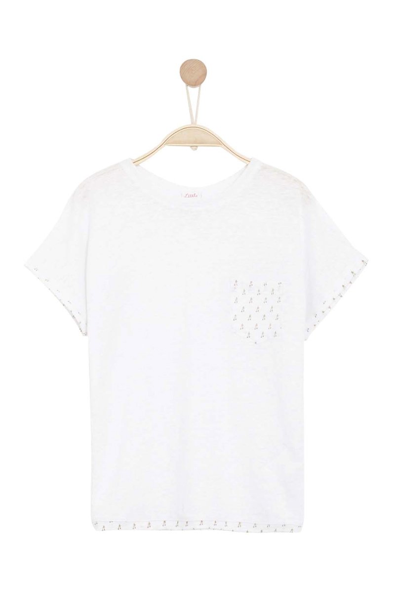Details met decoratief motief op de mouwen en aan de voorkant.