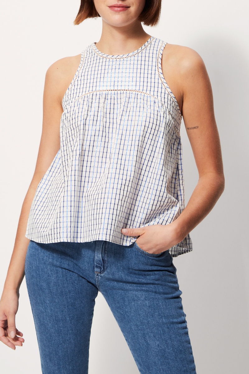 Biezen bij de hals, op de mouwen en aan de voorkant.