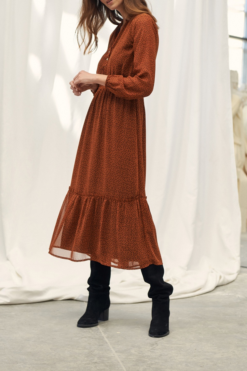 Lange jurk met stippenmotief.